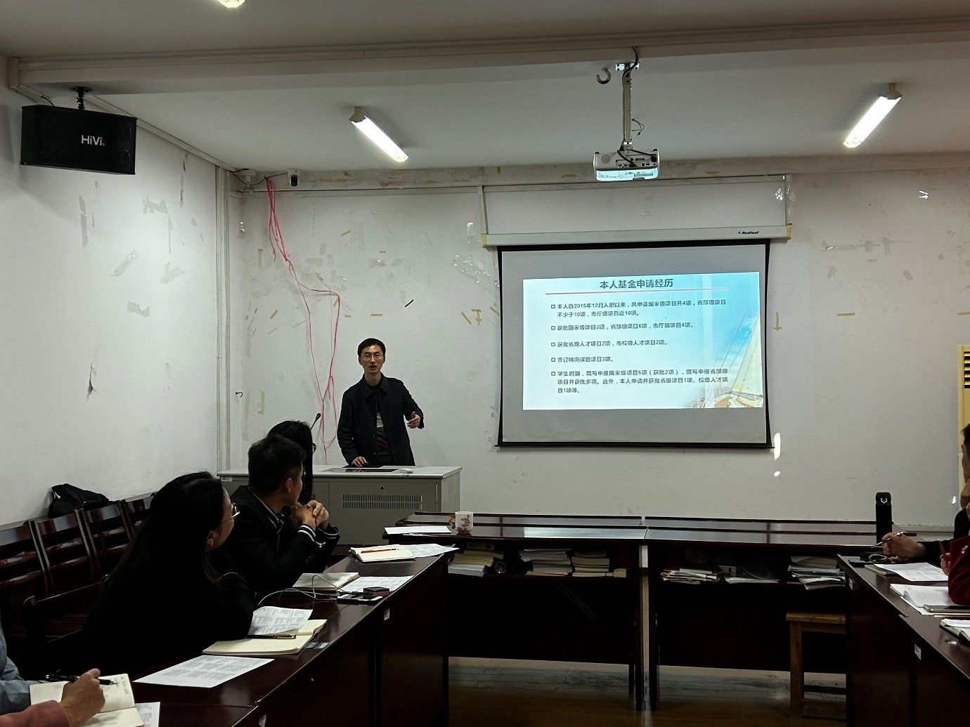 会上,徐婉珍首先介绍了近年来学院青年教师申报国家自然科学基金的大致情况和三位经验分享老师的国家自自然科学基金立项资助情况。接着戴志聪、逯子扬、陈明毅三位老师分别介绍了个人申报国家基金的经验和心得。戴志聪老师系统总结了基金撰写过程关于如何选题、如何凝练关键科学问题以及基金每个部分撰写的关键要点、注意事项等,并贴心地为各位青年教师印发了学习讲义;逯子扬老师从自身基金申请经历、申请经验分享两个方面着重介绍了基金撰写与提交过程中需重点关注的问题,同时,逯老师还介绍了基金撰写中关于科研绘图的经验,建议撰写时图文并茂;最后,陈明毅着重从如何衡量基金撰写过程中基础研究和应用研究关系方面进行了详细阐述。三位老师在分享过程中均提出在基金撰写过程中要对写作内容反复推敲、不断修改,多与前辈、同行进行交流、探讨,认真、逐步地完善基金申报工作。