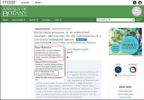 为第一单位)关于桉树新物种的研究成果被国际著名植物学期刊《Annals of Botany》在线发表。Susan Rutherford研究员是p站