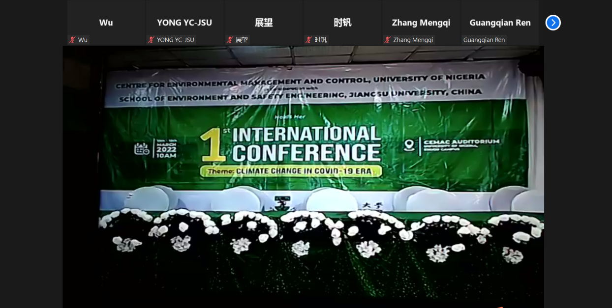 环境与工程学院(含生物质能源研究院、环境健康与生态安全研究院)协办的第一届“CLIMATE CHANGE IN COVID-19 ERA”国际会议在美丽的尼日利亚大学成功举办,会议聚焦后疫情时代可持续发展,瞄准全球气候变化管理和应急管理挑战,旨在研讨相关领域的最新前沿理论和技术。来自多个国家的科研人员通过现场/在线的方式参加了此次国际会议。
