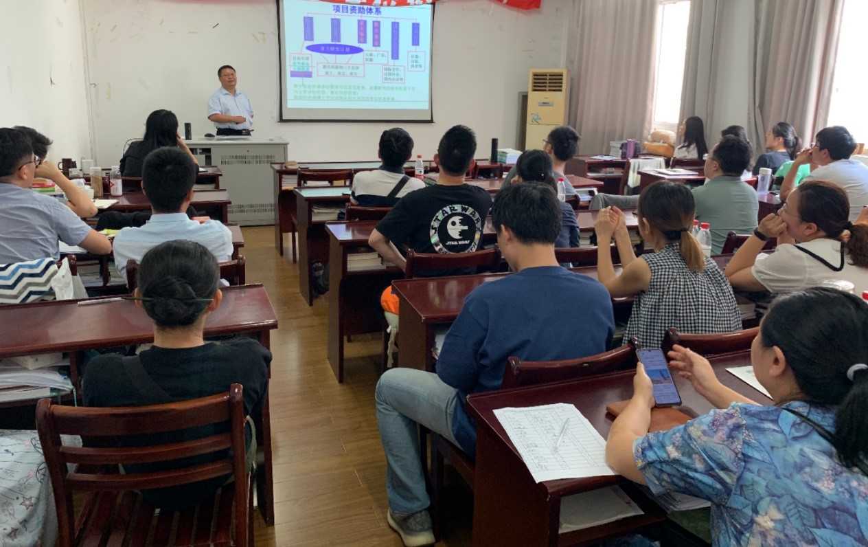 徐院长着重介绍了国家自然科学基金申报的重要性以及本次动员会的意义。杜院长首先介绍了2021年国家自然科学基金国家、学校及学院申报与立项总体情况,分析了学校和学院近五年立项占比,强调了国家自然科学基金申报尤其是立项对于个人科研道路发展的重要性,鼓励符合条件的老师们积极申报。接着杜院长从申报书的撰写、基金资助体系、申请和评审程序等方面比较详细具体地进行了介绍。杜院长还结合自身多年来国家自然科学基金申请的成功经验与体会,按照申请书的提纲和主体内容,详细讲解了国家自然科学基金申请书各部分内容的撰写要点和注意事项,强调申请书撰写态度要十分认真,下足功夫,报告正文要写成美文,读起来给人享受。