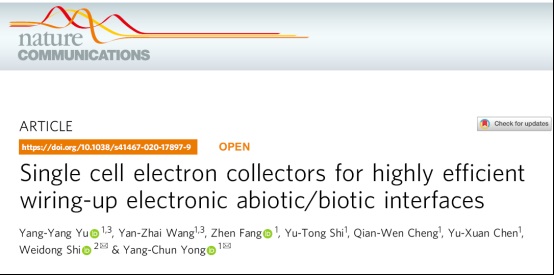 生物质能源研究院雍阳春教授课题组与化学化工学院施伟东教授课题组合作,在《自然-通讯》杂志(Nature Communications)在线发表了题为“Single cell electron collector for highly efficient wiring-up electronic abiotic/biotic interface”的研究论文。该工作完全由p站