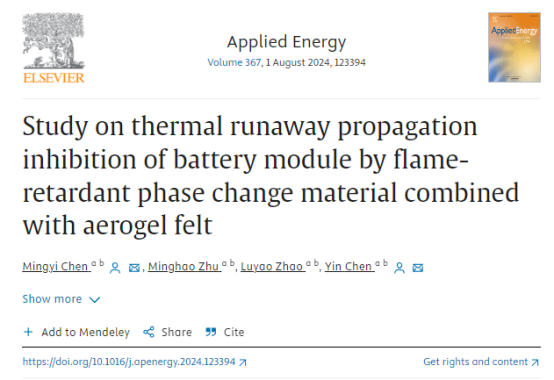 最新研究论文“Study on thermal runaway propagation inhibition of battery module by flame retardant phase change material combined with aerogel felt”在能源工程领域顶级期刊Applied Energy (IF:10.1)上发表。p站
