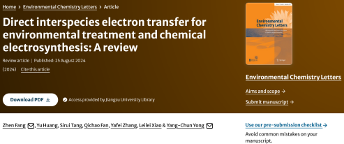 师生在Environmental Chemistry Letters杂志 (2023影响因子15)上在线发表最新综述论文“Direct interspecies electron transfer for environmental treatment and chemical electrosynthesis: A review”。p站