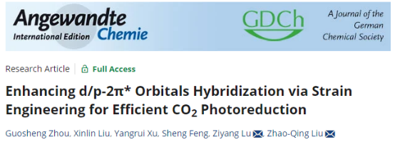 逯子扬教授等在《德国应用化学》(Angewandte Chemie-International Edition)上发表最新研究论文“Enhancing d/p-2π* Orbitals Hybridization via Strain Engineering for Efficient Photoreduction CO2”,并入选Inside Cover。p站