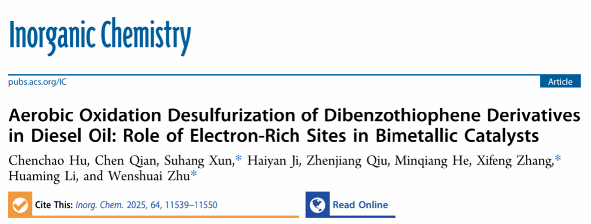 最新研究论文“Aerobic Oxidation Desulfurization of Dibenzothiophene Derivatives in Diesel Oil: Role of Electron-Rich Sites in Bimetallic Catalysts”在《Inorganic Chemistry》(Nature Index,SCI一区)期刊发表。p站