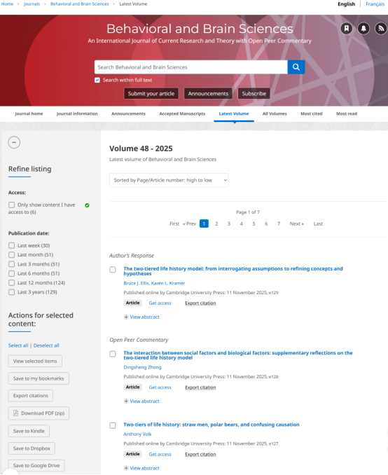 钟定胜老师为该文章的唯一作者和通讯作者。文章链接://www.cambridge.org/core/journals/behavioral-and-brain-sciences/latest-issue